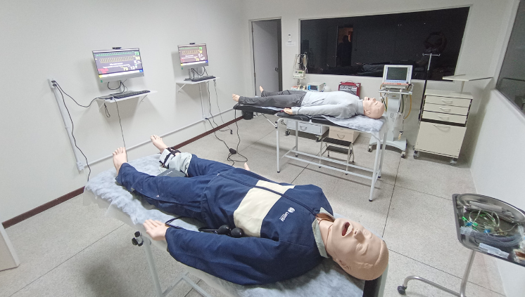 O Laboratório de Simulação é equipado com manequins realísticos e equipamentos instalados de modo que os professores possam orientar e supervisionar simulações de atendimentos de emergência, enquanto outros alunos acompanham tudo. Ao lado da sala de simulação, paredes de vidro e projetores garantem que os colegas de turma possam ver em tempo real as decisões dos colegas diante dos pacientes.